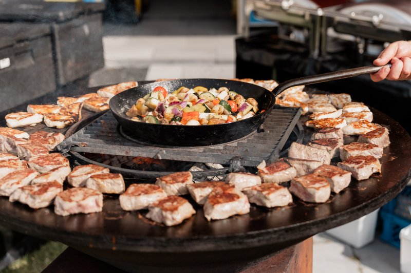 Gerne runden wir Ihre Feier kulinarisch mit Grillspezialitäten, kalten und warmen Buffets, Salaten oder traditionell angerichteten Speisen im Rahmen unseres Catering ab.